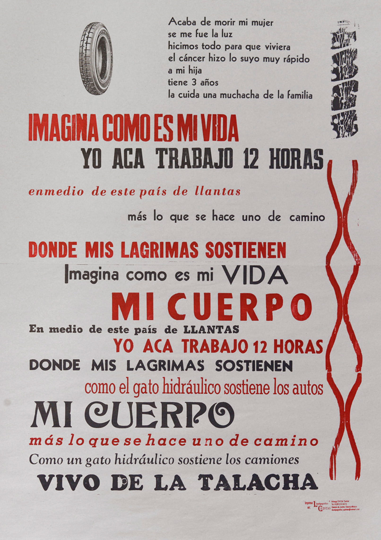 Poètes, graphistes, universitaires, architectes, militant.e.s, mécaniciens et tant d’autres rencontres, les complices de cette aventure sont nombreux.ses. Le dernier volet du voyage a été amplement nourri par les vulcanizadoras, ces ateliers brûlants de réparation de pneus, disséminés dans toute la ville, telles des taches de rousseur.