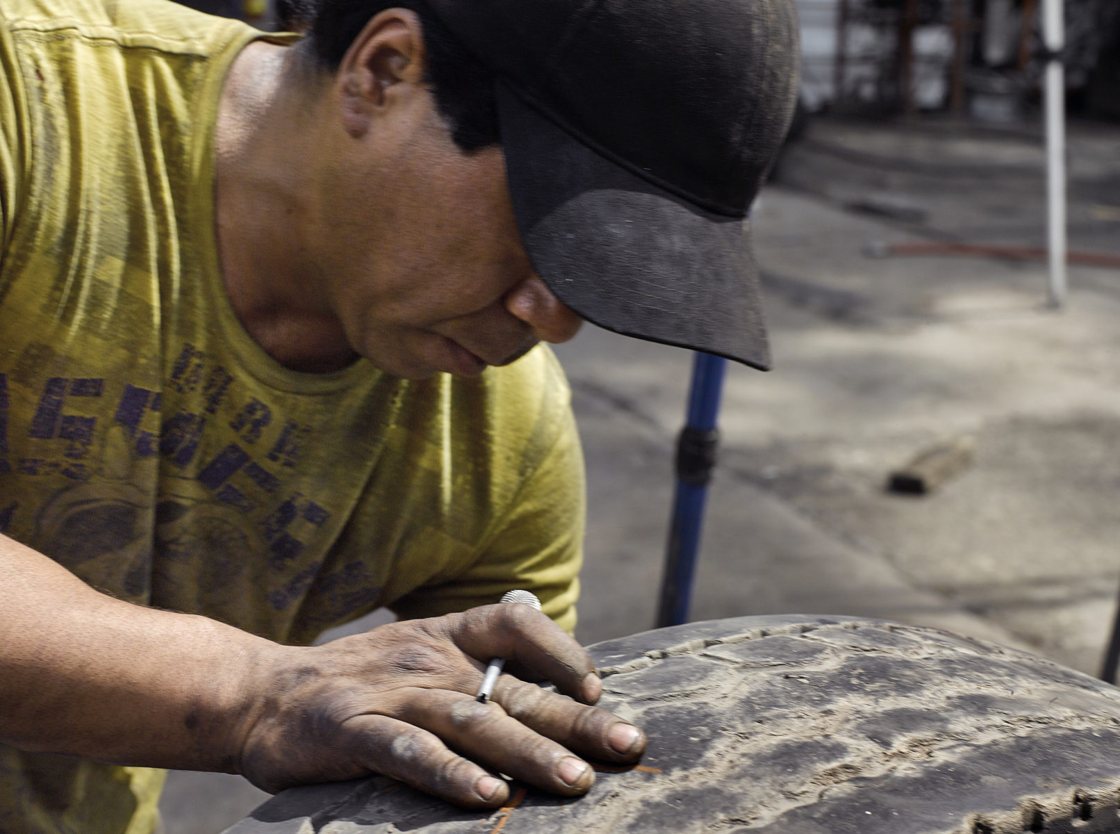 En définitive, ces échoppes ne sont pas le plus beau reflet de la capitale. Elles sont néanmoins un rouage essentiel de la circulation, peu importe le manque de ressources. Les soins qu’ils prodiguent aux camions de marchandises prolongent la vie de ces engins à bout de souffle. Au milieu de la graisse et de la crasse, dans un environnement assourdissant, la vulcanizadora est un lieu d’espoir et de conciliation entre la modernité écrasante qui en laisse un bon nombre de côté, et le désir de continuer à avancer, même avec des rustines, même avec des illusions perdues.