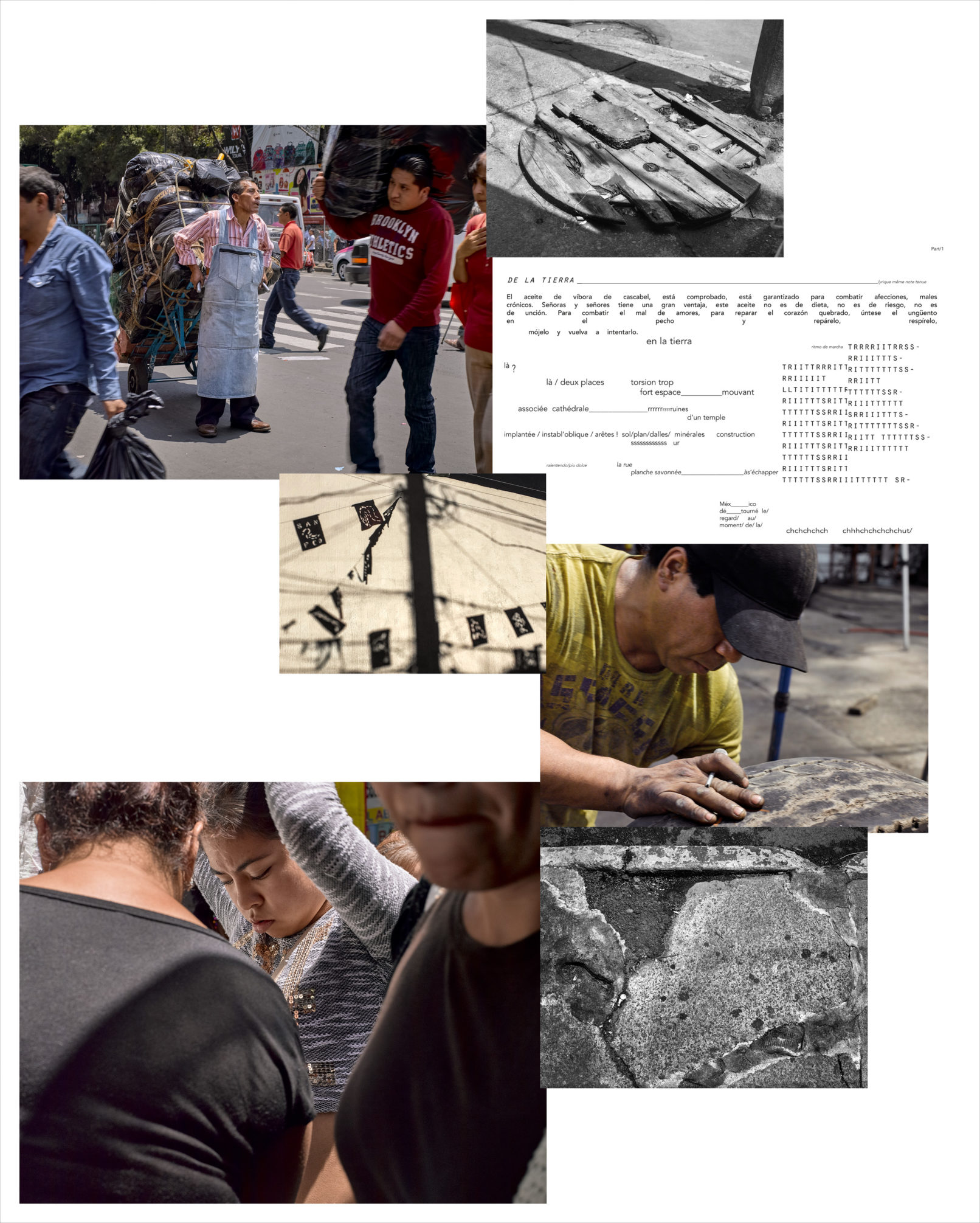 Leur collecte d’images, de sons, d’objets et d’idées nous conduit sur les chemins iconoclastes de la beauté. Leur curiosité sans borne alimente leur capacité d’étonnement face au banal et la remise en question de l’évidence. À travers un paysage palimpseste de sept années de voyages à Mexico, ce trio d’artistes nous offre une expérience immersive à la mémoire fragmentée, dévoilant des liens insoupçonnés, voire déroutants.